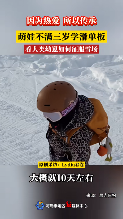 因为热爱 所以传承 萌娃不满三岁学滑单板 看人类幼崽如何征服雪场