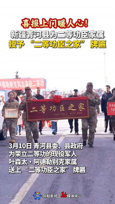 喜报上门暖人心!新疆青河县为二等功臣家属授予 “二等功臣之家” 牌匾