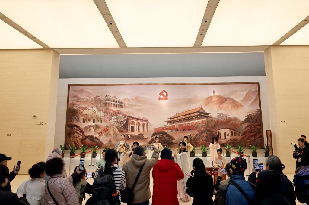 2月17日,参观者在中共一大纪念馆内观看表演。新华社记者 方喆 摄