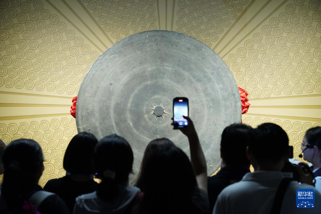 8月24日,人们在位于南宁的广西民族博物馆“壮族文化展”参观镇馆之宝——云雷纹大铜鼓。新华社记者 尹栋逊 摄