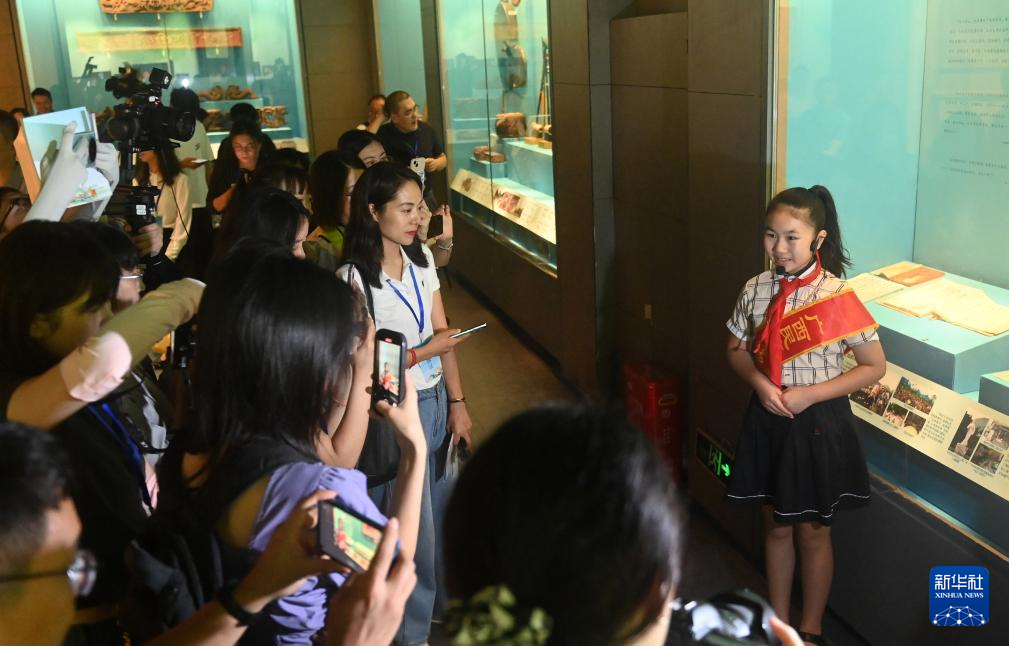 8月24日,在位于南宁的广西民族博物馆,11岁的“红领巾”志愿讲解员周思言为参观者讲解。新华社记者 陆波岸 摄