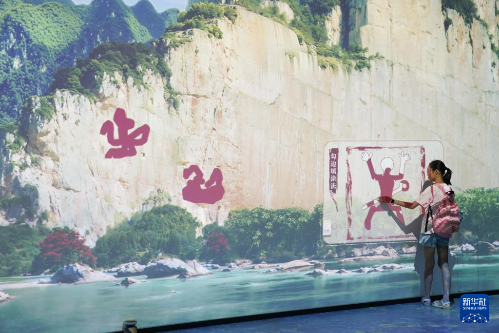 8月24日,参观者在位于南宁的广西民族博物馆体验“骆越遗珍——左江花山岩画数字化展”互动项目。新华社记者 尹栋逊 摄
