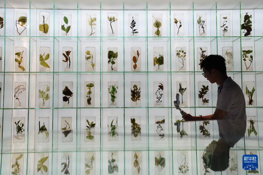 8月24日,参观者在位于广西金秀的瑶医药博物馆拍摄瑶药材标本。新华社记者 尹栋逊 摄