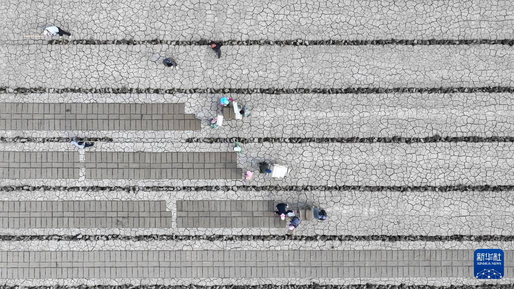 4月20日,在河北省唐山市丰南区西葛镇越支六村,农民在田间开展水稻育秧工作(无人机照片)。新华社发(李秀清摄)