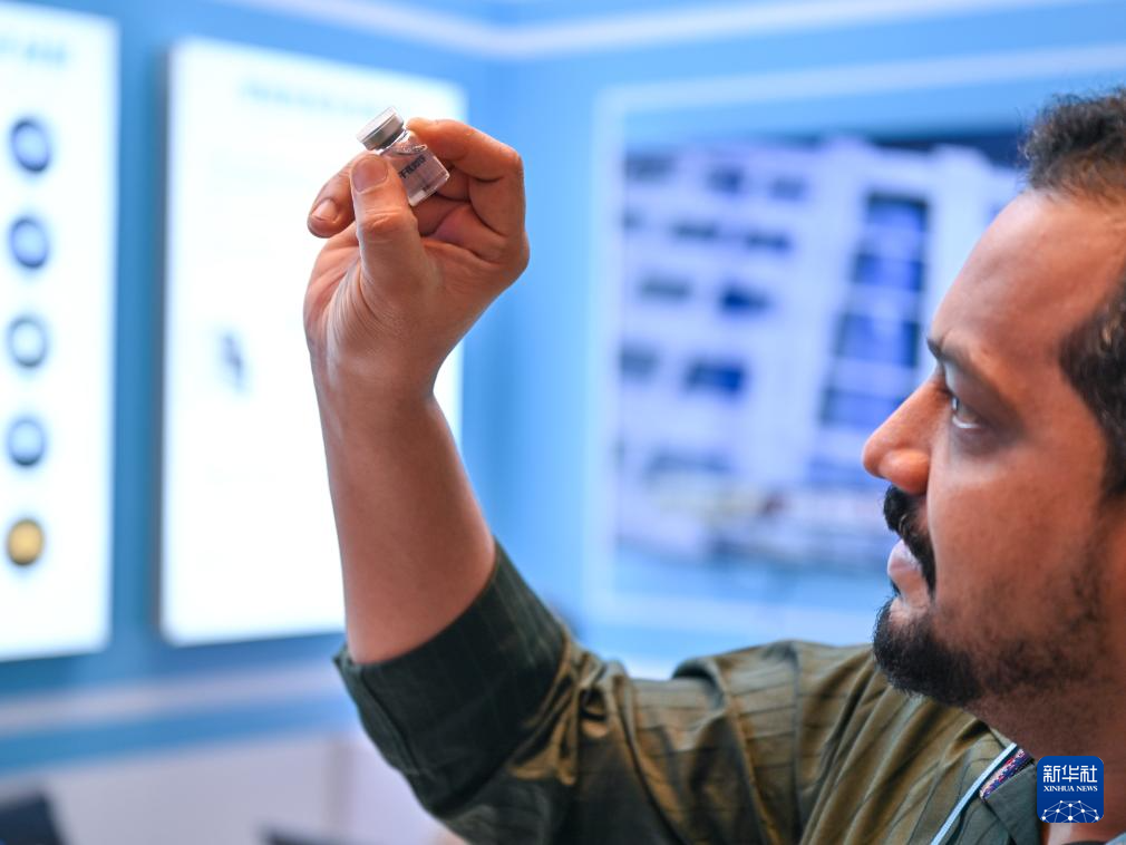 11月3日,客商在广交会展馆捷诺飞生物展台观看生物3D打印的微肝模型。新华社记者 肖恩楠 摄