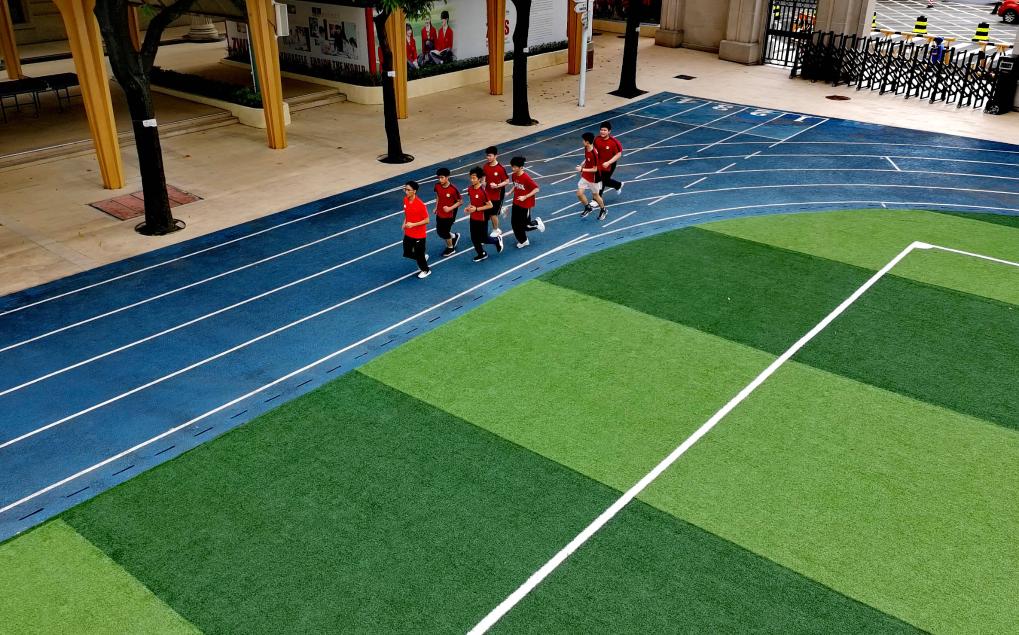 广东现代五项运动协会教练员带领广州市中黄港澳子弟学校学生进行慢跑训练。新华社记者 肖恩楠 摄