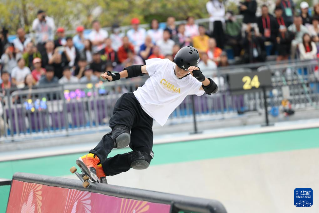 当日,第十五届全国运动会滑板项目男子碗池赛决赛在广东惠州举行。