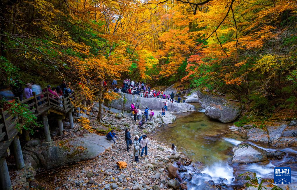 11月15日,游人在四川省巴中市光雾山旅游区赏景。新华社发(付海旭摄)