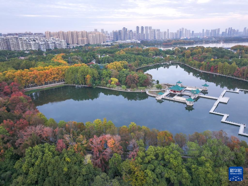 11月13日在湖北省武汉市东湖风景区拍摄的初冬景色(无人机照片)。新华社发(赵军摄)