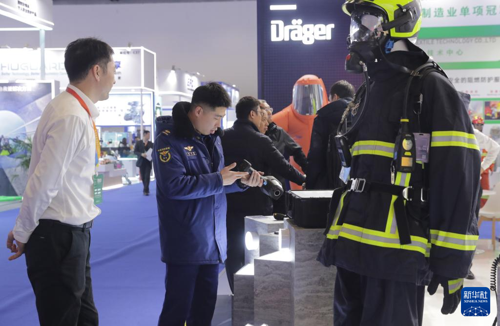 11月18日,观众在2025中国国际应急管理展览会德尔格展位参观。新华社记者 郭昱 摄