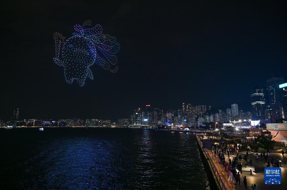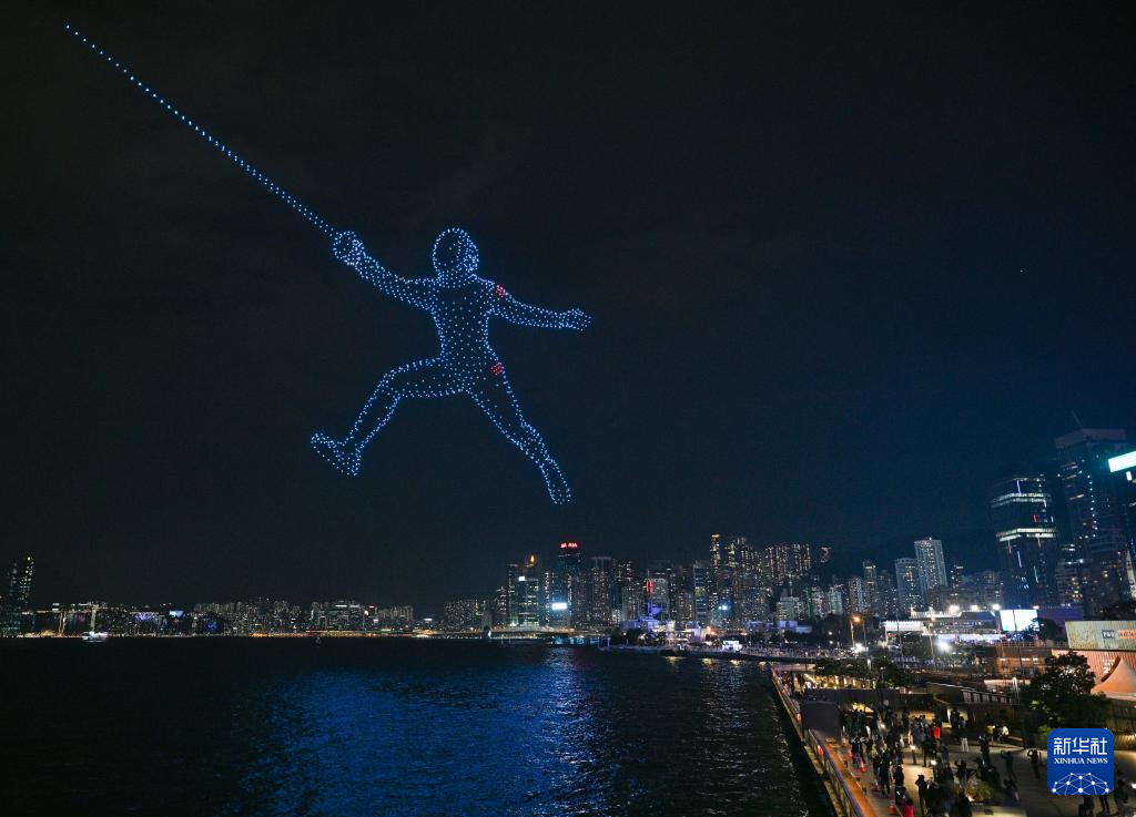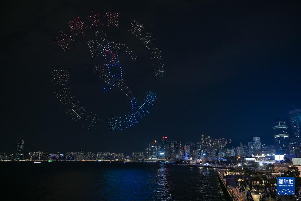 香港举行“体育力量 闪耀香江”大型无人机表演