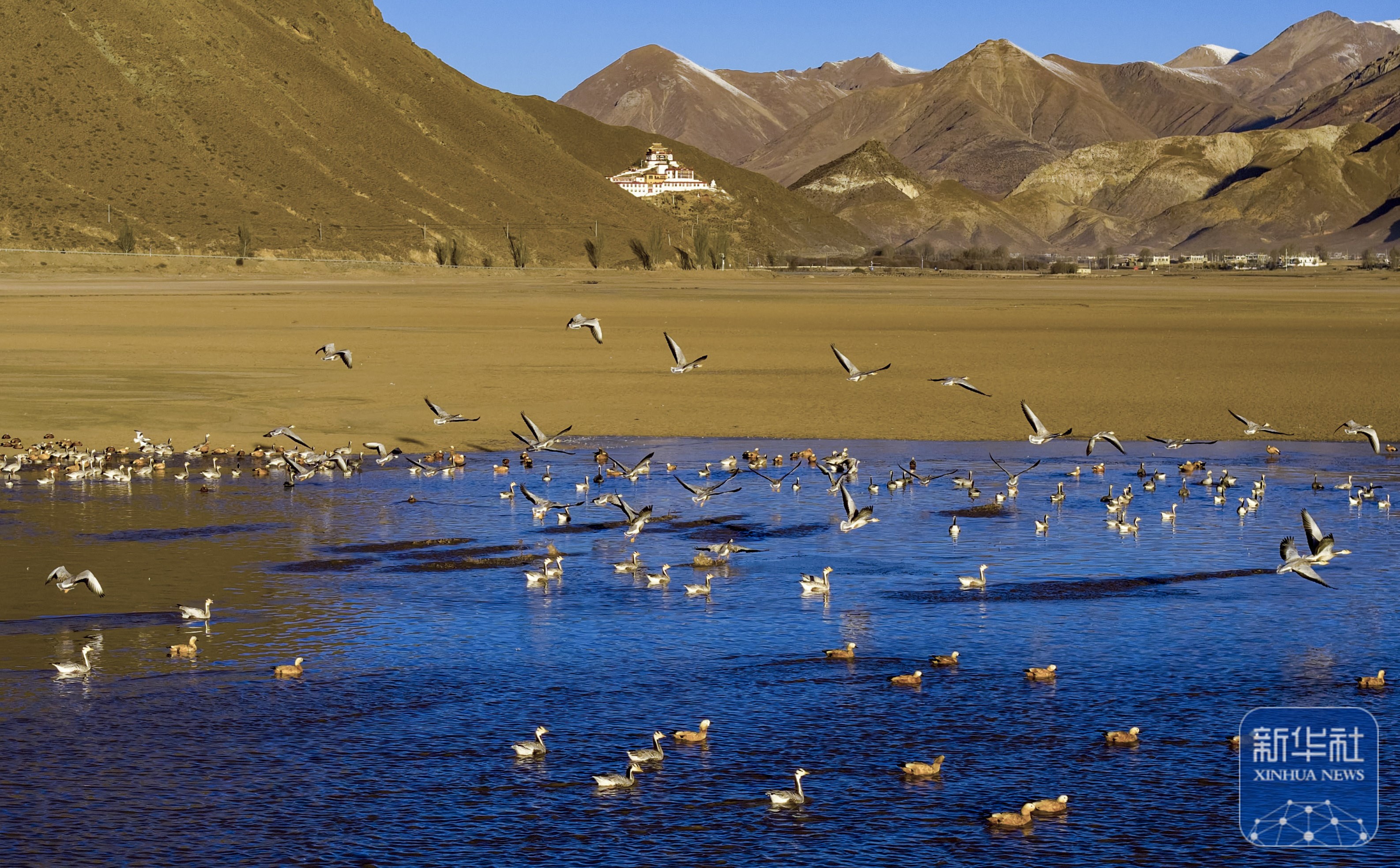 冬日时节,拉萨市林周县迎来大批越冬候鸟,黑颈鹤、斑头雁、赤麻鸭等候鸟在河谷、湖泊等地觅食、休憩。