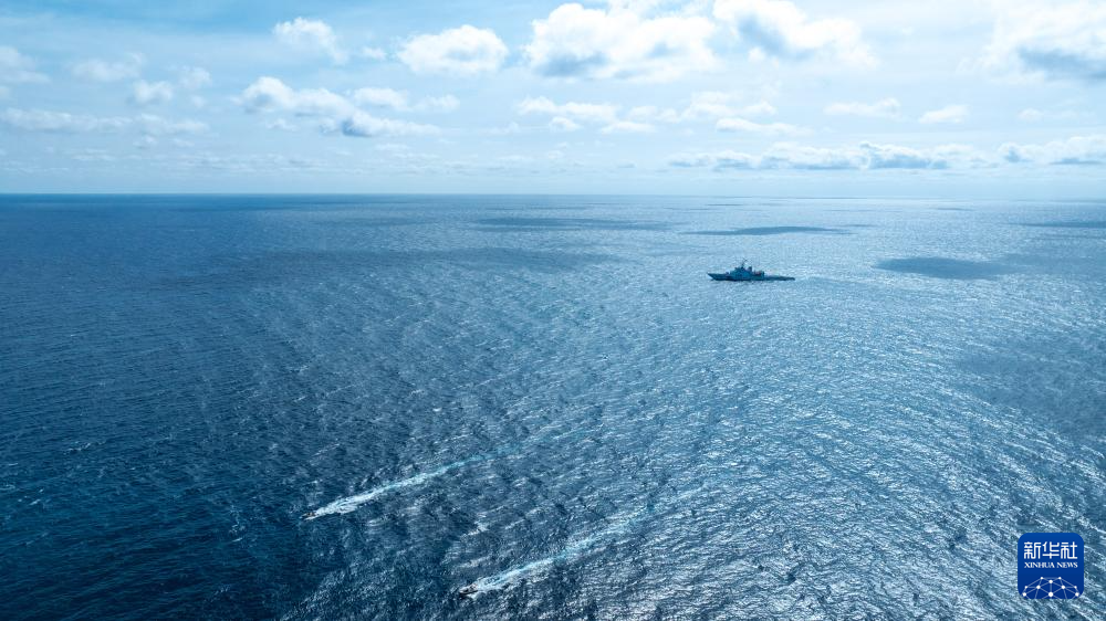 11月14日,中国海警黄岩舰在黄岩岛领海开展常态化巡航(无人机照片)。新华社记者 贝赫 摄