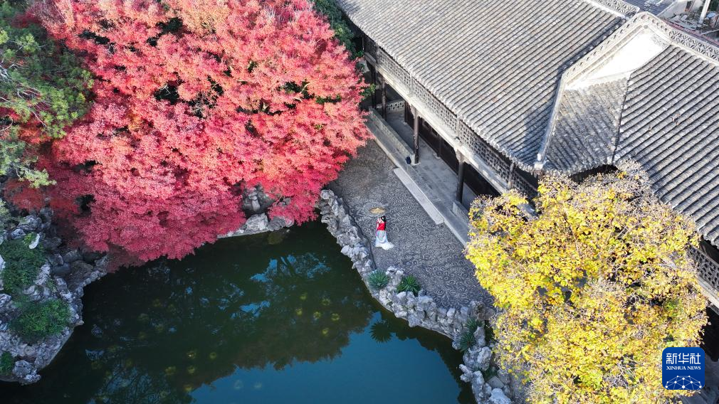 11月28日,游客在江苏扬州何园风景区游玩(无人机照片)。新华社发(齐立广摄)