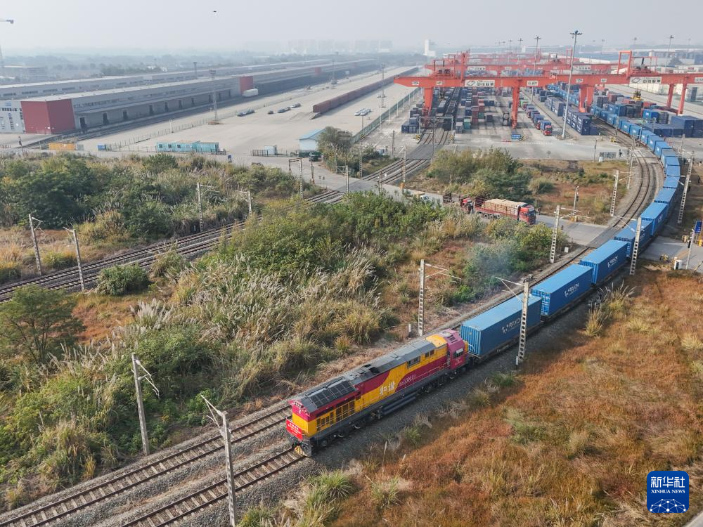 11月28日,X8086次中欧班列从成都青白江区国际铁路港驶出。新华社记者 王曦 摄