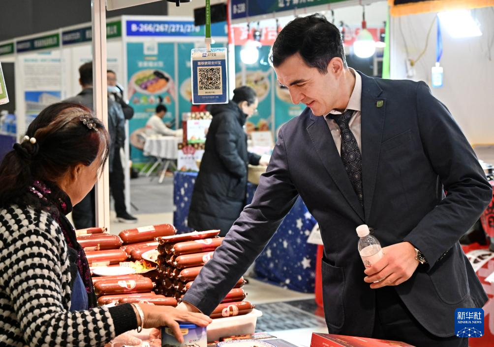 12月19日,一名客商在博览会上了解食材配料。新华社记者 李紫恒 摄