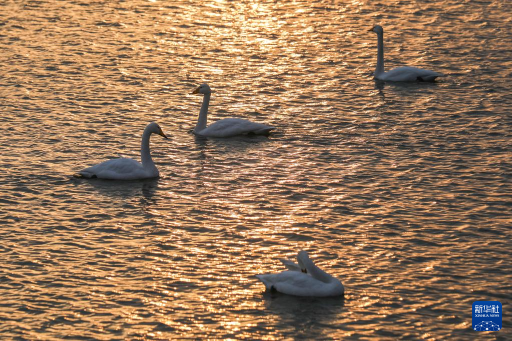 12月21日,白天鹅在河南省三门峡市天鹅湖国家城市湿地公园内栖息。新华社发(何五昌摄)