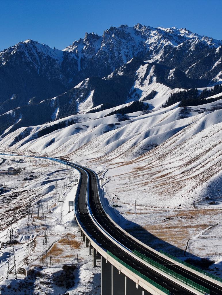 乌尉高速公路穿越天山山脉(2025年12月20日摄)。新华社记者 胡虎虎 摄