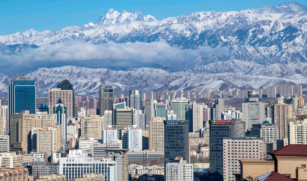 天山脚下的乌鲁木齐城区一角(2022年3月20日摄)。新华社记者 胡虎虎 摄