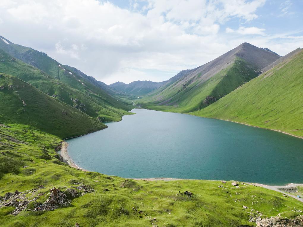 新疆和静县一处高山湖泊景观(2023年7月5日摄)。新华社记者 郝昭 摄