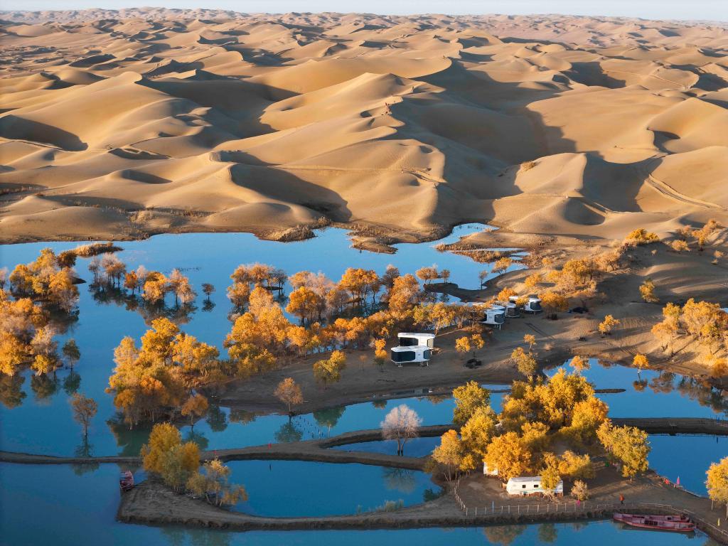 这是在新疆尉犁县附近拍摄的大漠胡杨秋景(2024年10月26日摄)。新华社记者 胡虎虎 摄