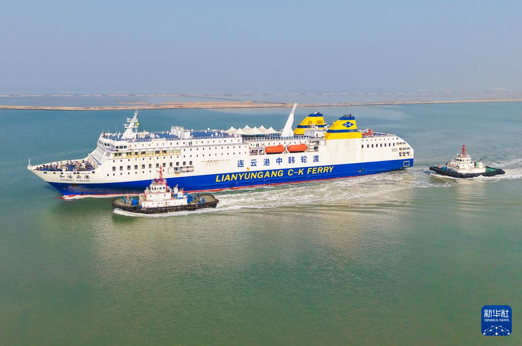 12月28日,韩国游客乘和谐云港轮抵达江苏连云港。新华社发(王健民摄)