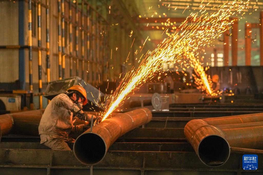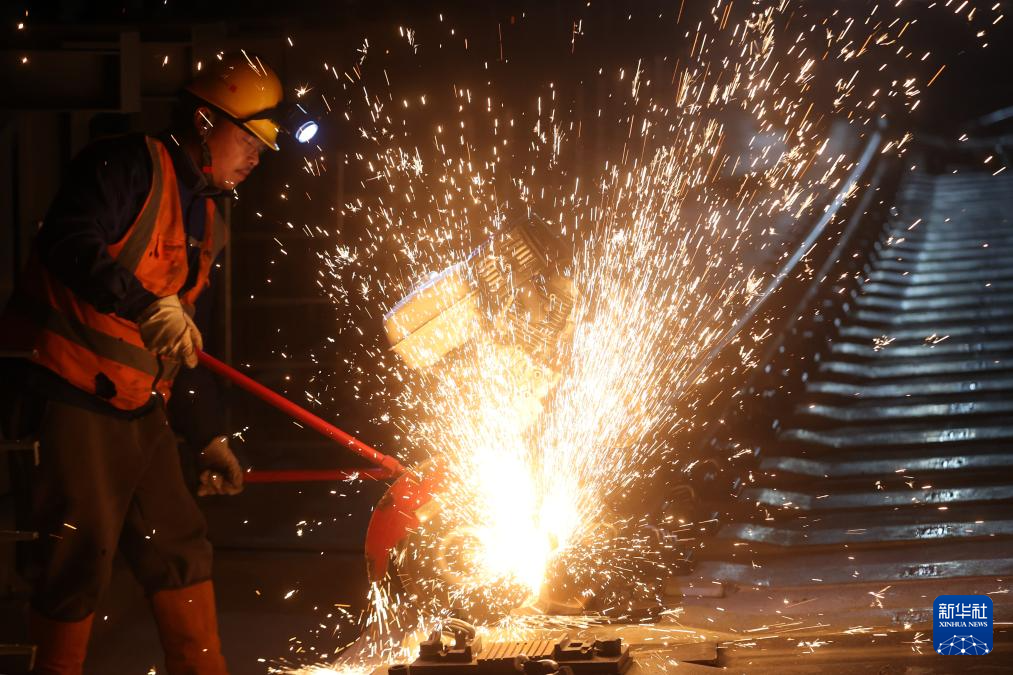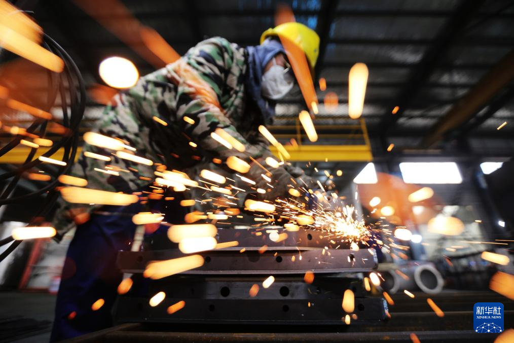 12月29日,江苏省扬州市杨庙镇一家机械制造企业的工人在进行打磨作业。新华社发(孟德龙摄)