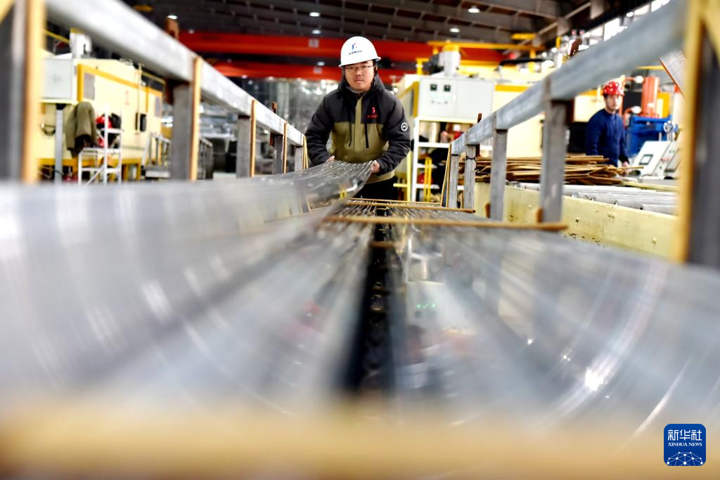 12月31日,工人在山东省滨州市惠民经济开发区的一家铝业公司车间生产铝型材订单。新华社发(王军摄)
