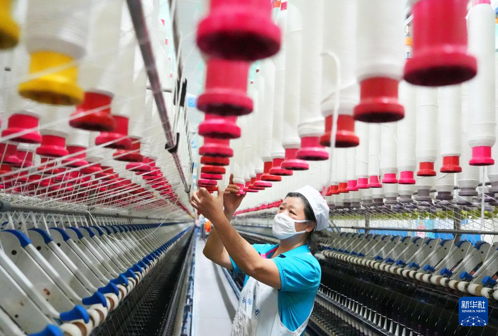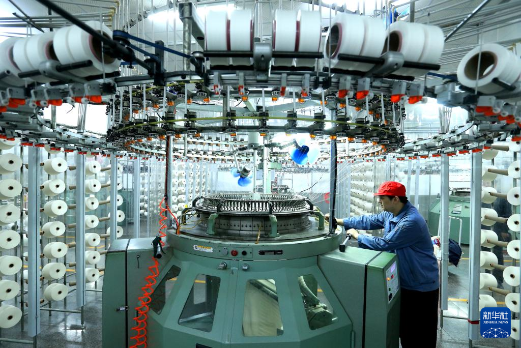 12月31日,在湖南省衡阳市白沙洲工业园,衡阳天锦纺织有限公司员工在生产线上作业。新华社发(曹正平摄)