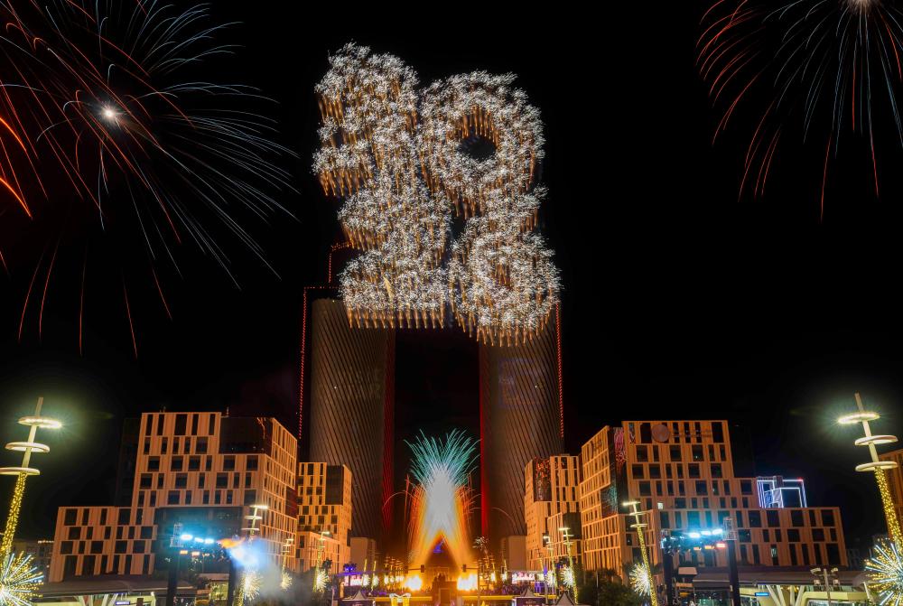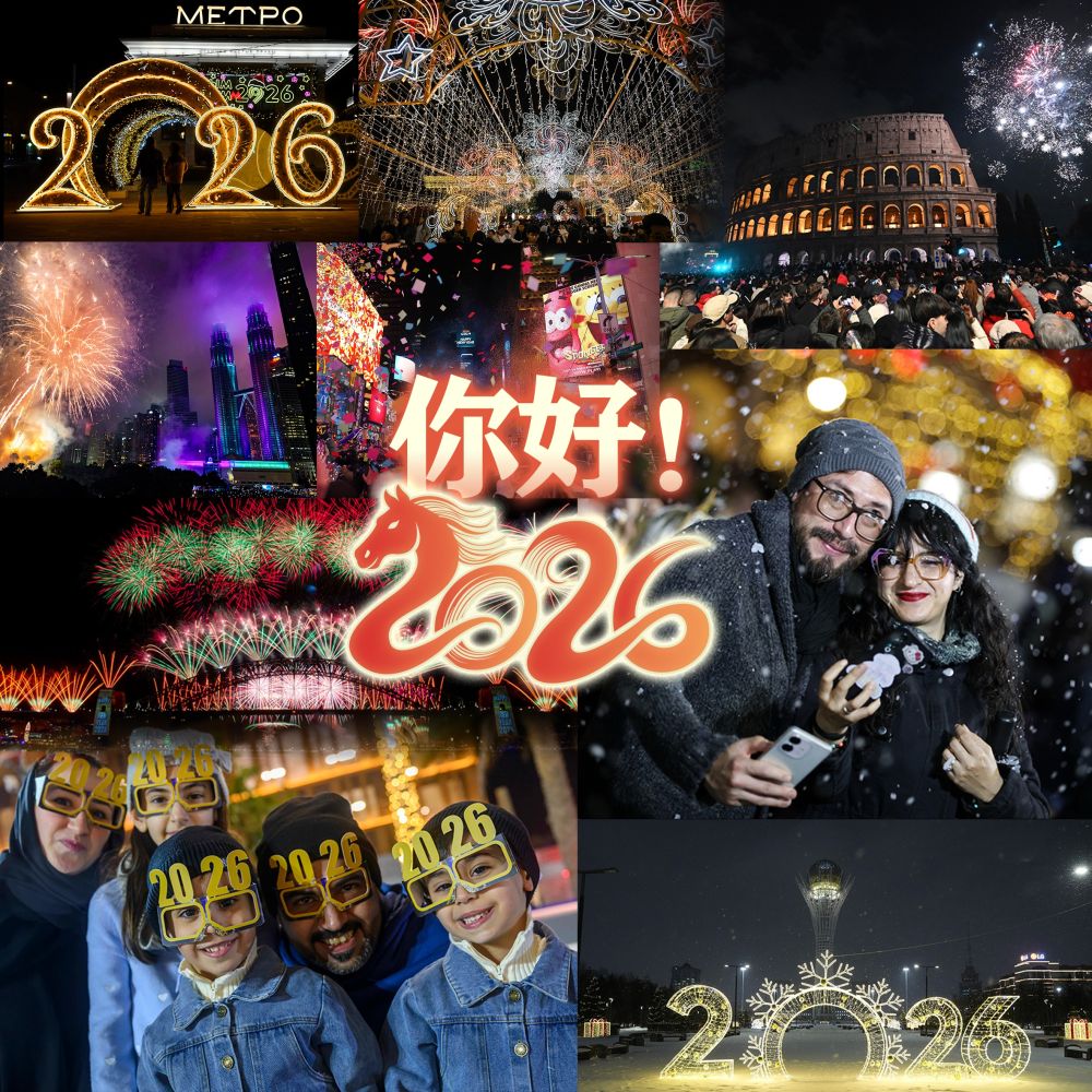 这是2026年1月1日在卡塔尔首都多哈拍摄的新年庆祝活动现场。