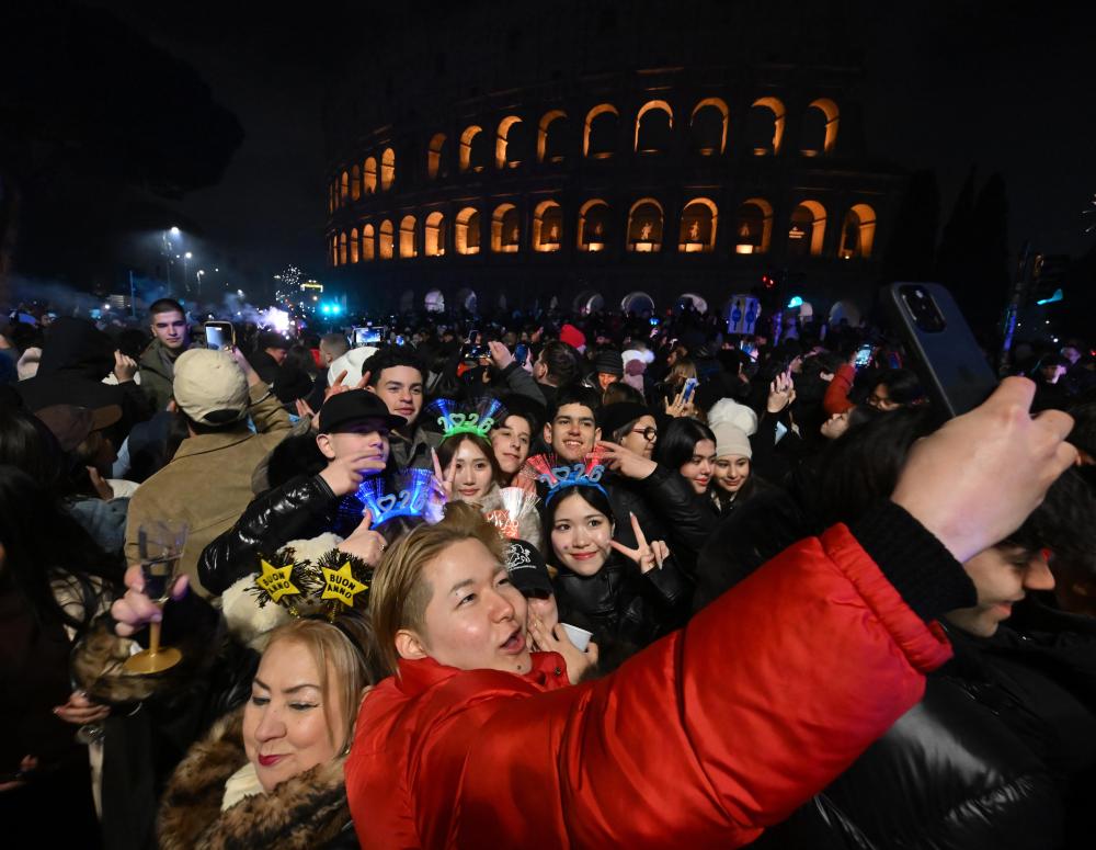2026年1月1日,人们在意大利罗马苹丘庆祝新年。