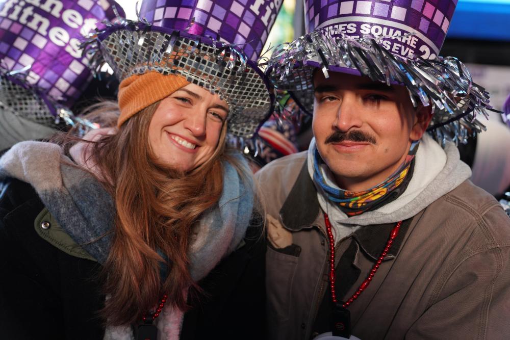 2025年12月31日,人们在美国纽约时报广场参加跨年庆祝活动。