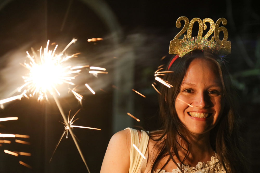 2025年12月31日,一名女子在萨尔瓦多拉利伯塔德省一处海滩参加跨年活动,迎接2026年的到来。