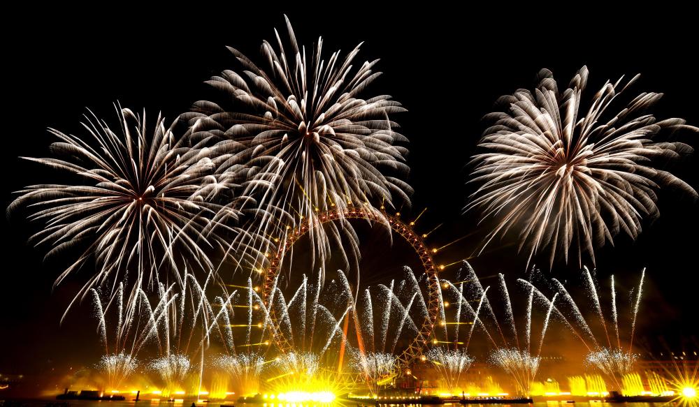 2026年1月1日凌晨,在英国伦敦,新年烟花在伦敦眼绽放。