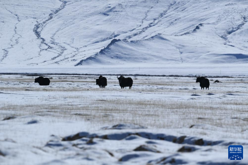 这是1月9日在甘肃省阿克塞哈萨克族自治县阿勒腾乡哈尔腾高原拍摄的野牦牛。新华社发(高宏善摄)