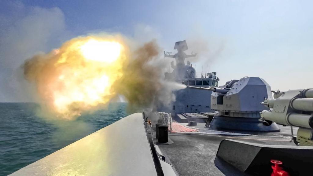 面对任务海域复杂环境,指挥员迅速研判态势,命令主炮战位做好射击准备,各舰运用雷达、光电系统跟踪锁定目标。随着一枚枚炮弹呼啸而出,目标被成功“摧毁”。