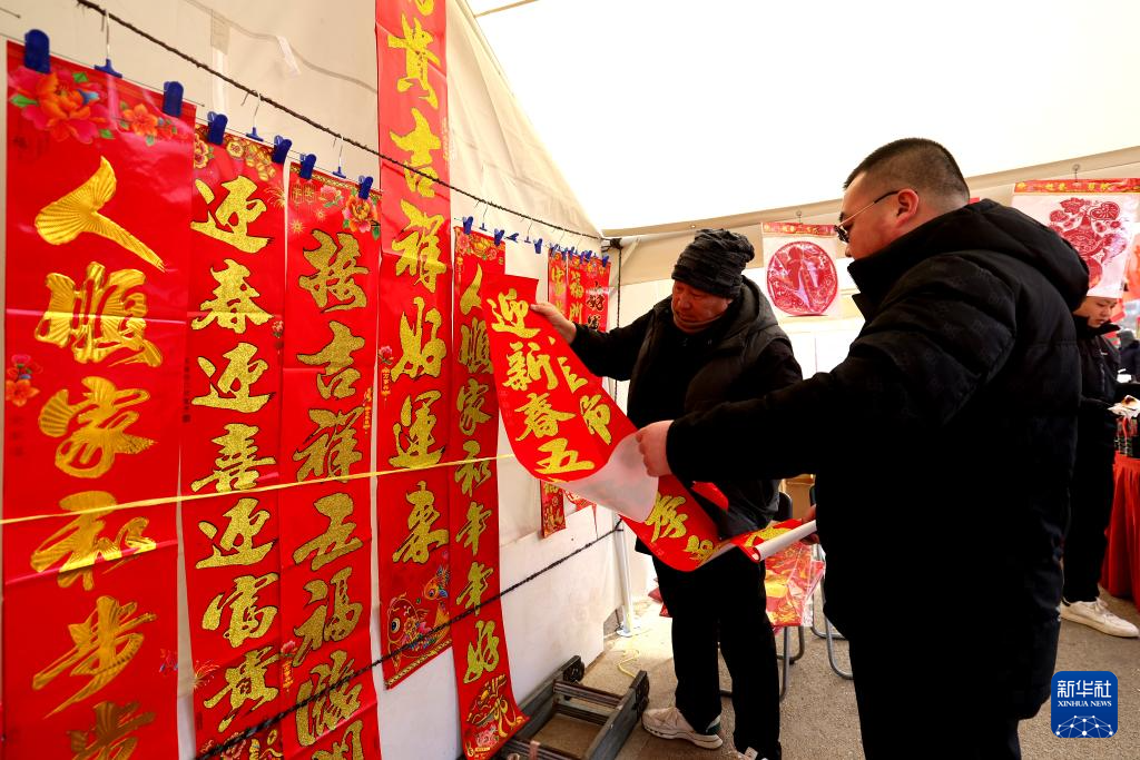 2月6日,市民在集市上选购春联。新华社记者 卢烨 摄
