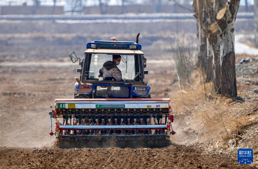 近日,宁夏银川市贺兰县的农民积极开展小麦春耕备耕,田间地头一片繁忙的景象。