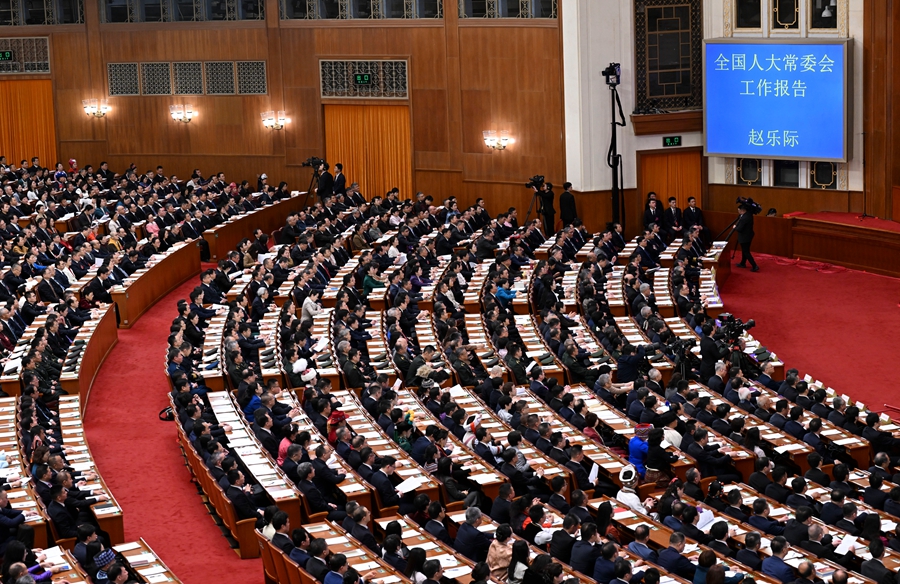 3月9日,十四届全国人大四次会议在北京人民大会堂举行第二次全体会议。新华社记者 程婷婷 摄