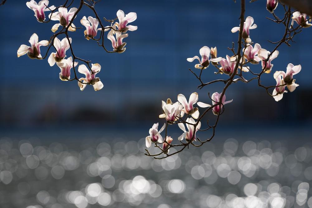 2026年3月9日,国家大剧院旁玉兰花盛开。新华社记者 鞠焕宗 摄