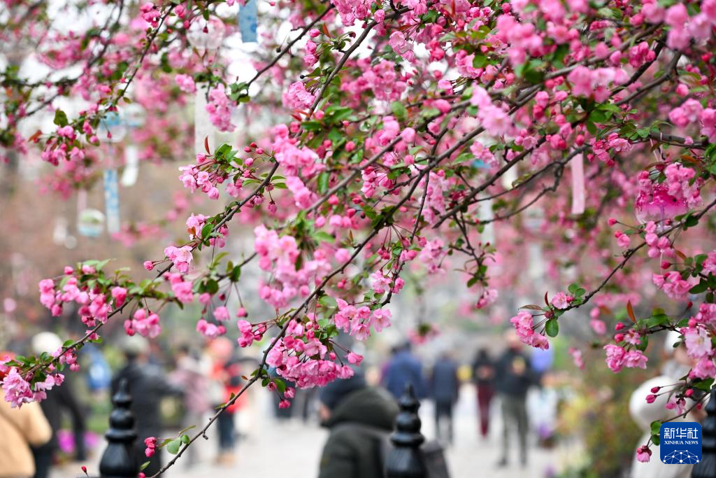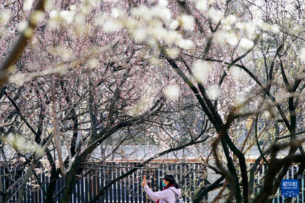 3月18日,人们在江苏省昆山市亭林园赏花拍照。新华社发(王须中摄)