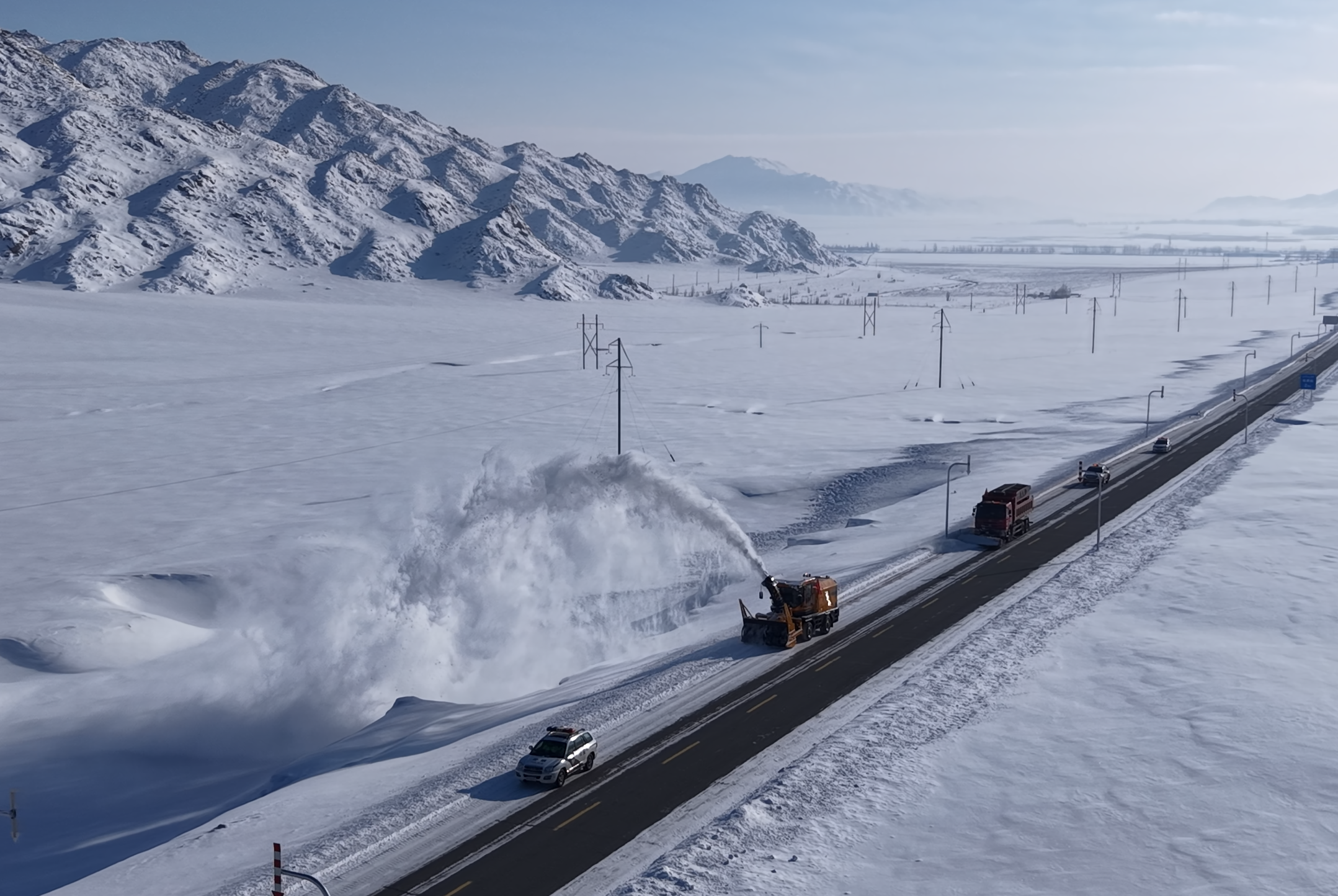 橘红映雪护航通途 富蕴公路人寒潮中的坚守