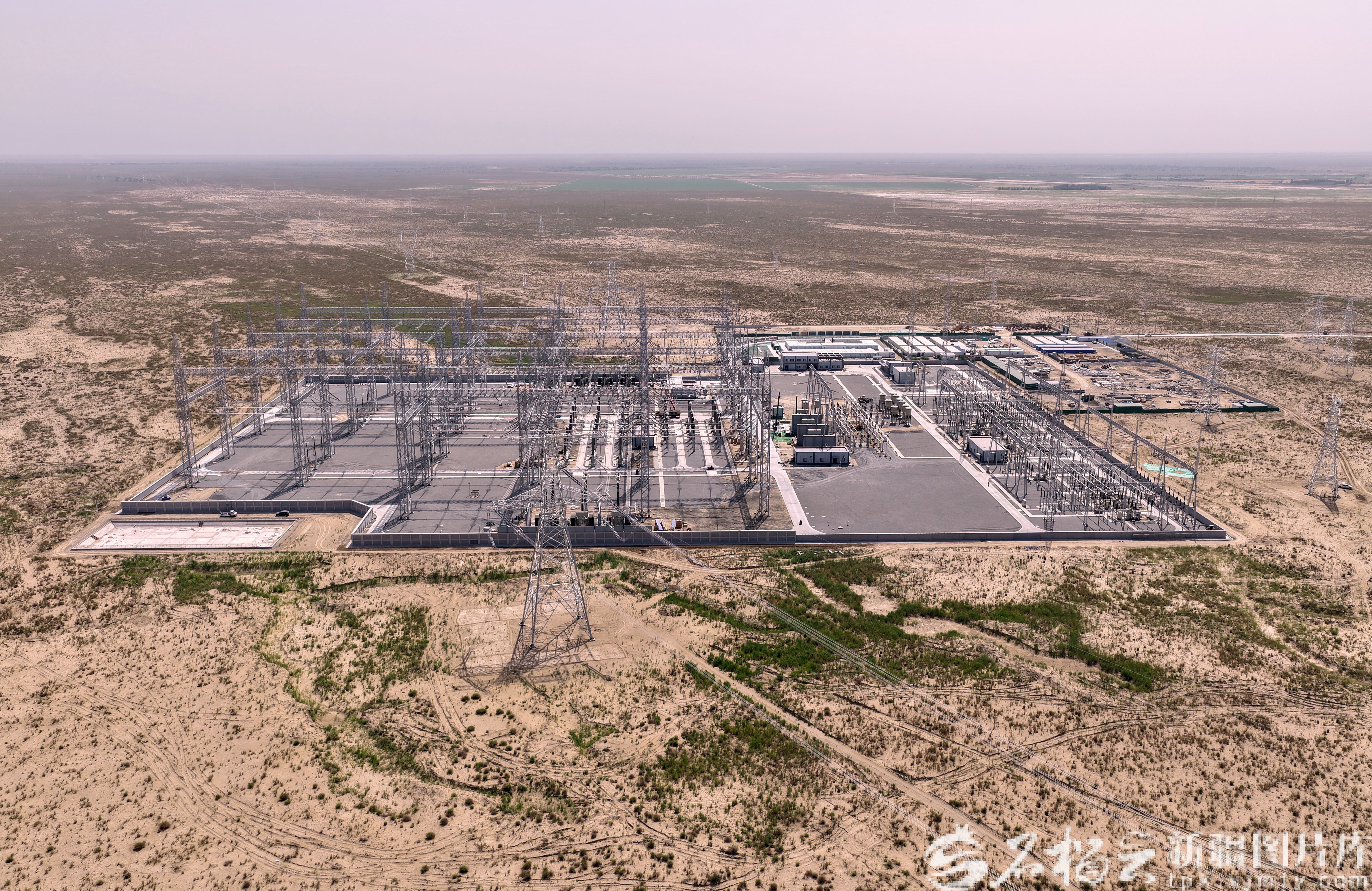 今年7月,和田—民丰—且末—若羌750千伏输变电工程全线贯通,至此,环塔里木盆地750千伏输变电工程正式“合龙”。图为750千伏且末变电站。马元摄