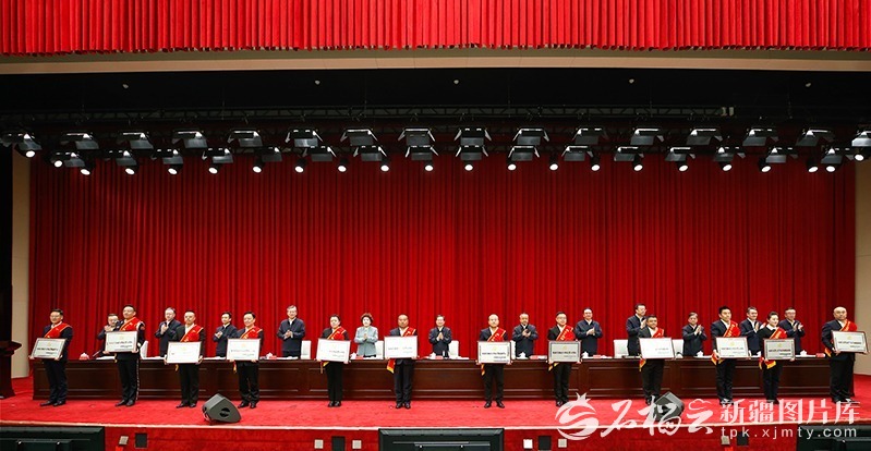 自治区党委副书记、自治区主席艾尔肯·吐尼亚孜,自治区人大常委会主任祖木热提·吾布力,自治区政协主席努尔兰·阿不都满金,自治区党委副书记、兵团政委何忠友,自治区党委副书记张柱、陈明国出席。