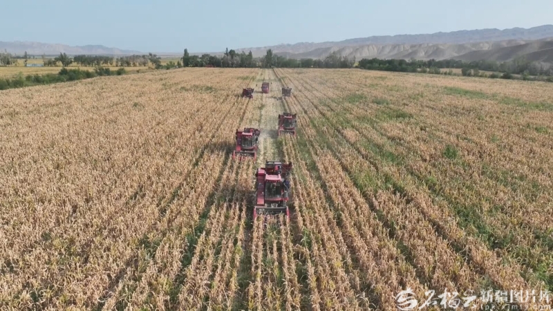 9月末,玛纳斯县包家店镇的制种玉米地里,农机来回穿梭收割玉米,一派丰收的繁忙景象。玛纳斯县融媒体中心供图