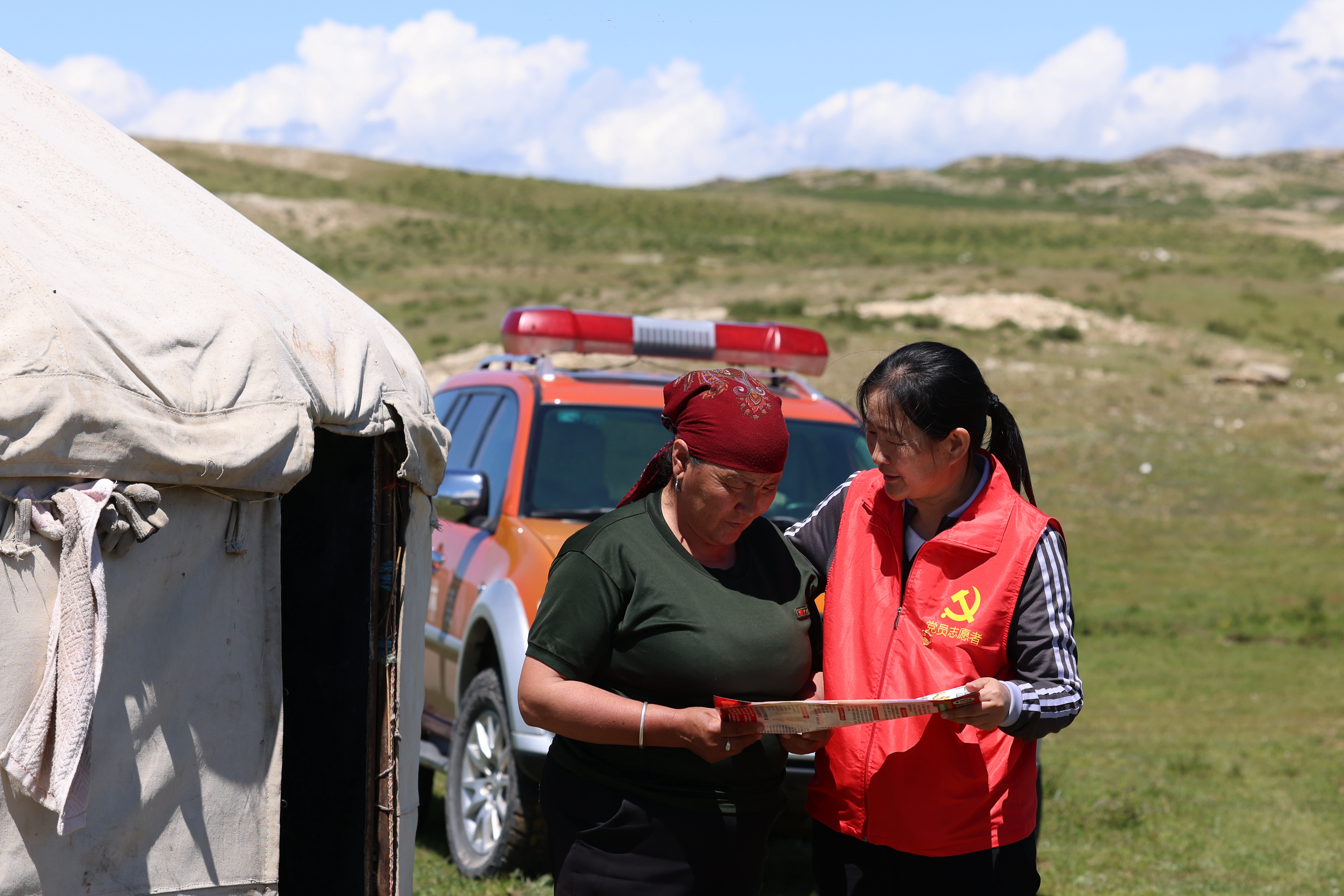 活动中,党员向辖区内牧民发放森林防火宣传单、宣传手册等,面对面宣讲森林防火有关法律法规以及森林防灭火基本常识等。同时,对牲畜转场沿途垃圾进行清理,以实际行动守护美丽家园。