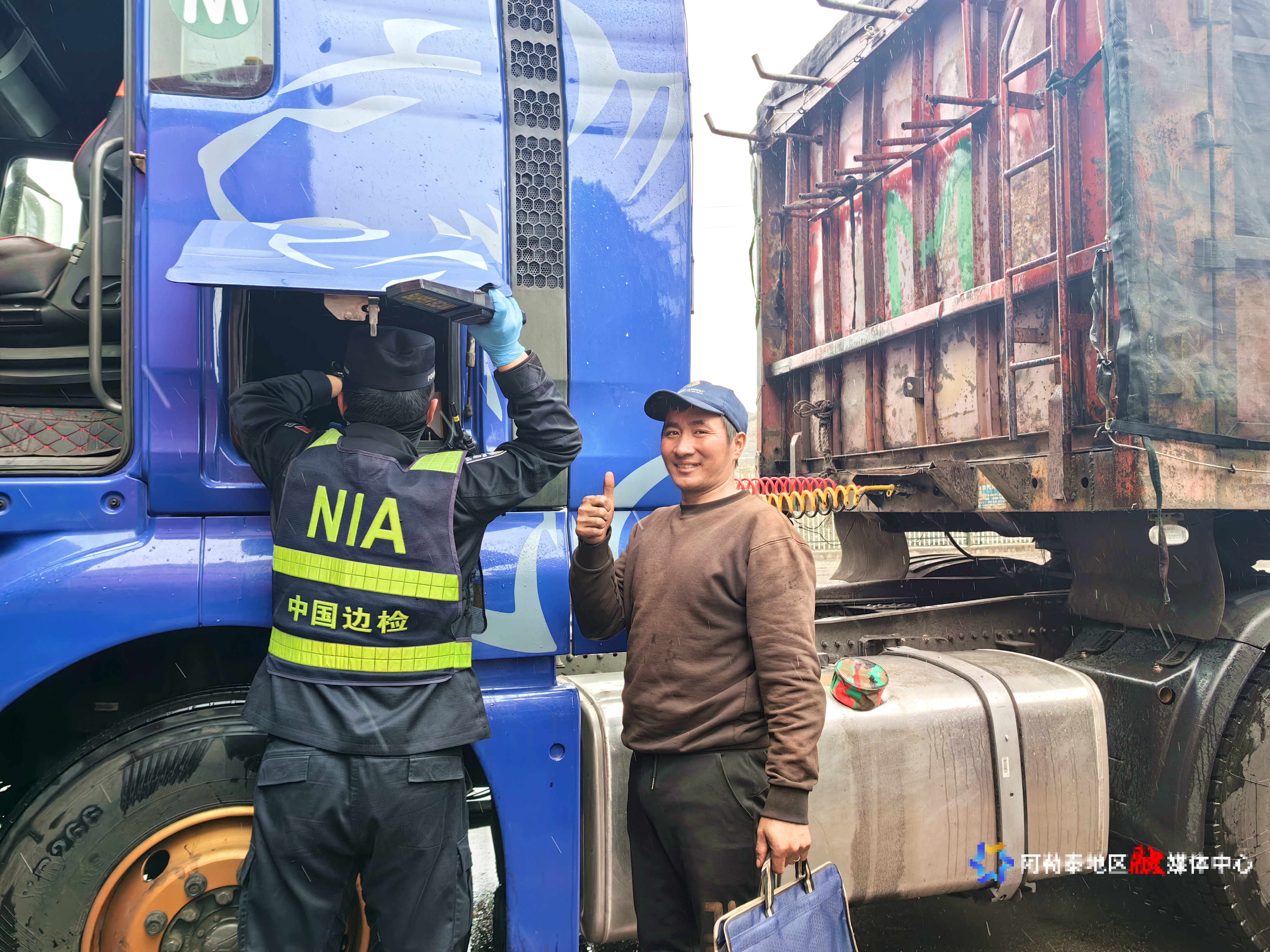“请出示证件!”民警们一边擦着脸上的雨水,一边认真核对证件、检查车辆,不放过任何潜在隐患。完成查验后,蒙古国货车司机巴特巴亚竖起大拇指连声称赞:“这么大的雨,民警还在坚持工作,真是让人感动。”