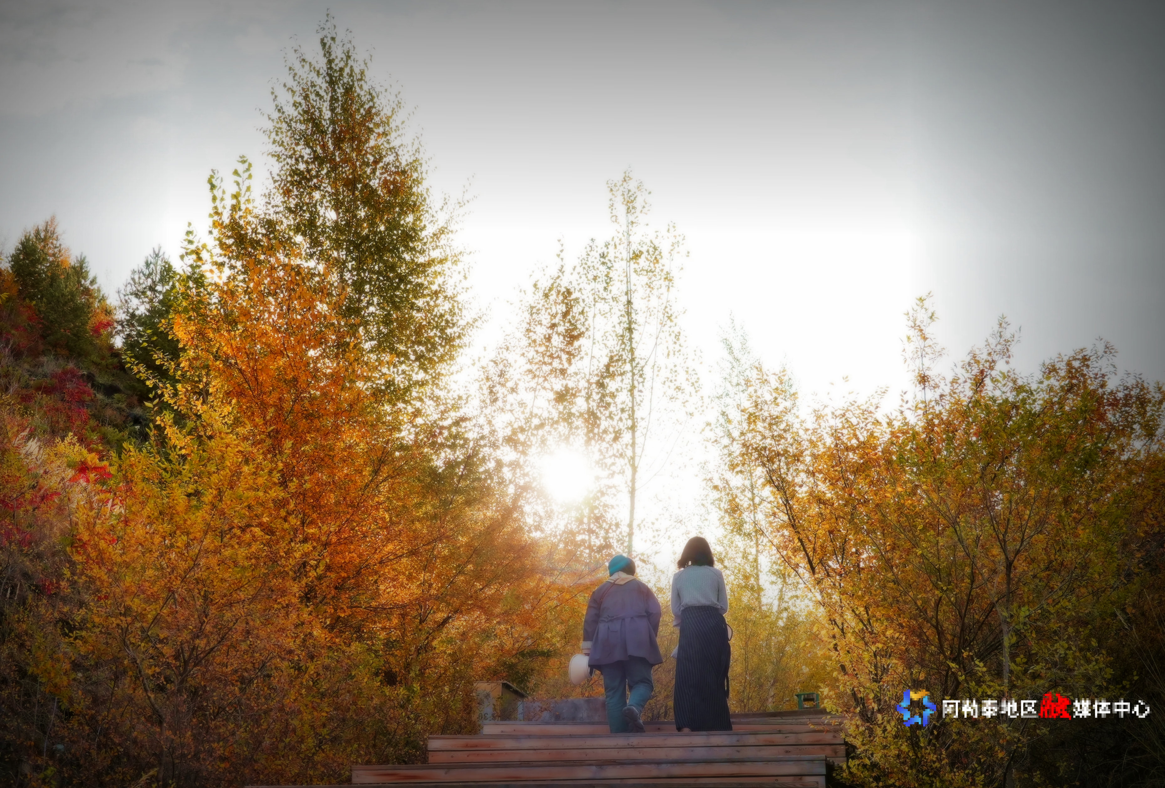 当第一缕晨光勾勒出将军山的轮廓,这座“城市脊梁”便成了阿勒泰最温柔的臂弯。落叶铺就的“地毯”与远处的鸟鸣构成自然协奏,大自然这位调色大师,将将军山晕染成印象派的画布。金黄的白桦、火红的槭树、苍翠的云杉在风中轻舞,阳光为每片叶子镀上金边,行走其间仿佛闯入立体的油画世界。在这幅流动的秋日长卷里,时间仿佛放慢了脚步,让人沉醉在这如诗如画的秋色中,忘却尘世的喧嚣与纷扰,令人生出无限缱绻美妙的遐想。