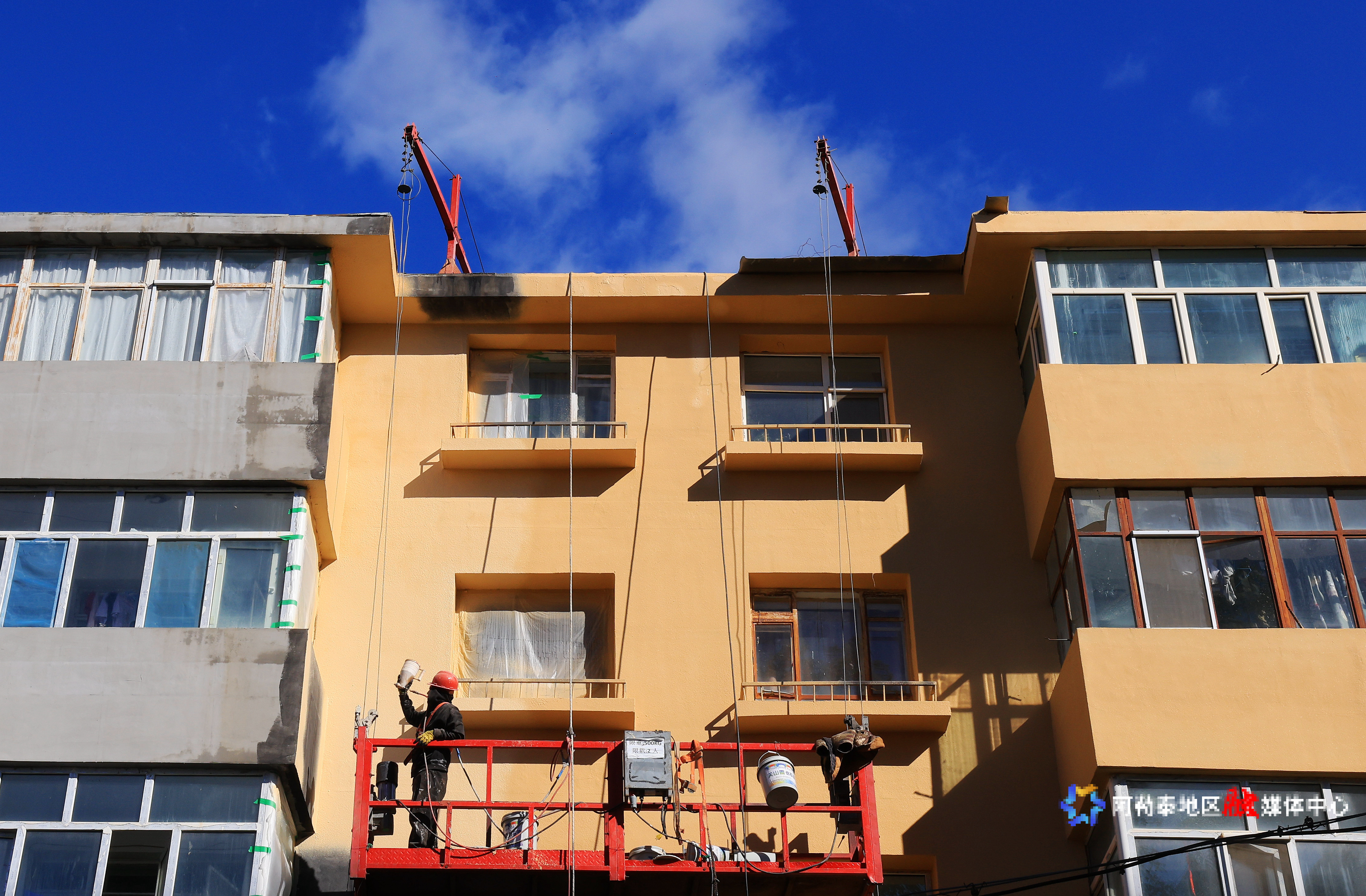 阿勒泰新闻网-阿勒泰地区融媒体中心(记者 阿尔达克·拜斯汗)10月7日,阿勒泰市团结路一老旧小区改造现场,施工人员正开展外墙喷涂作业,确保老旧小区改造工程如期推进。
