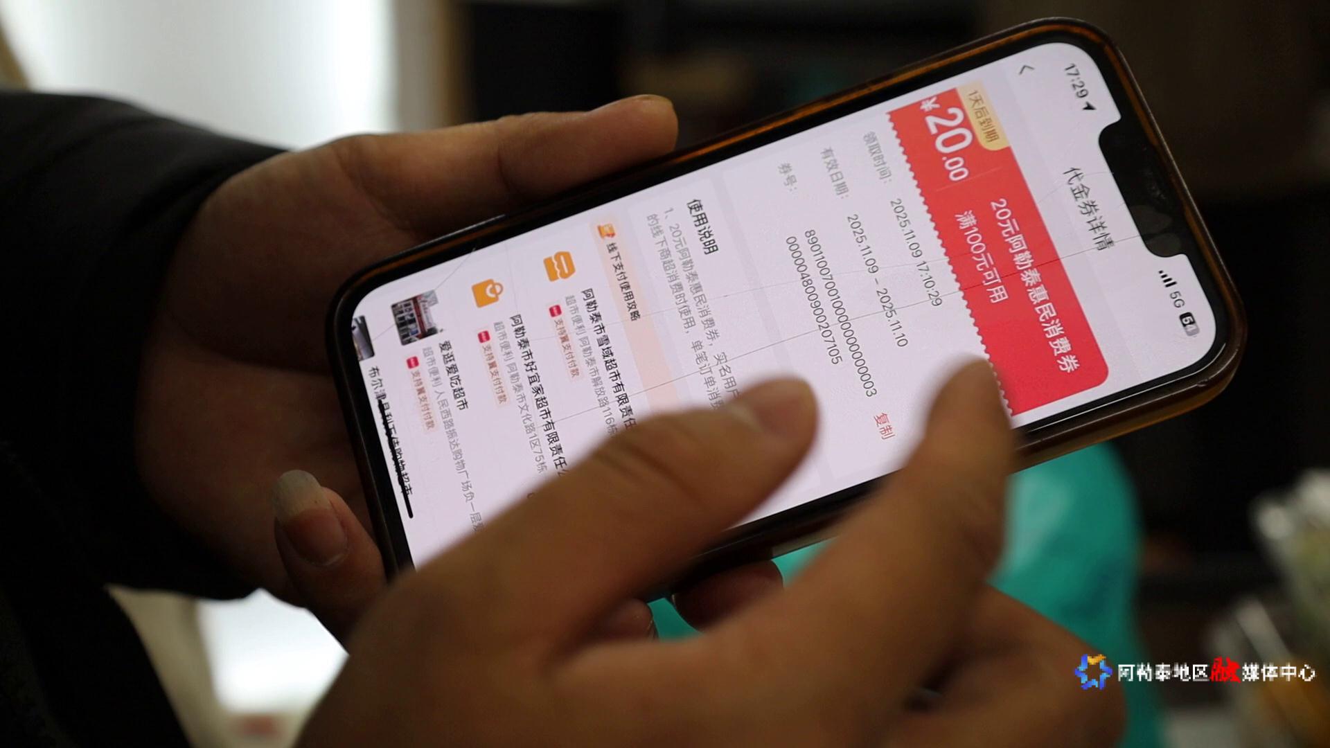 当日,阿勒泰市万驰广场雪域超市内,市民们循着活动信息而来,在货架间挑选心仪商品。“原价116元的家居好物,用了‘满100减20’补贴券,只花96元就拿下了!”市民夏特克努尔·叶尔兰直言活动既方便了生活采购,又实实在在省下了开支,暖心又实用。
